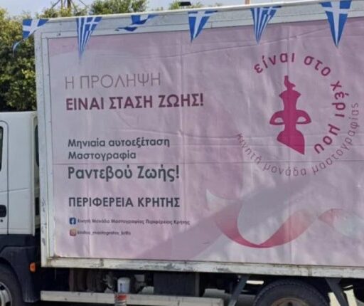 Mε επιτυχία ολοκληρώθηκε η παρουσία της Κινητής Μονάδας Μαστογραφίας της Περιφέρειας Κρήτης, στο Δήμο Βιάννου στα πλαίσια του προληπτικού ελέγχου για τον καρκίνο του μαστού.