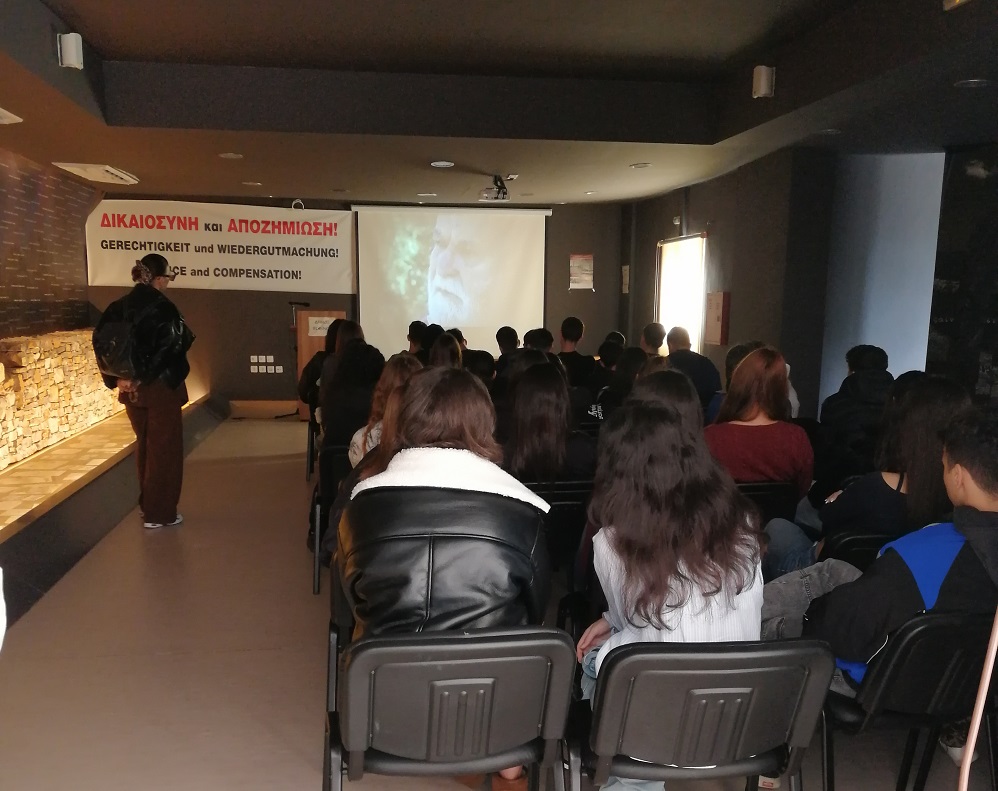 Αμέσως μετά βρέθηκαν στο Μουσείο Ολοκαυτώματος, όπου οι μαθητές παρακολούθησαν βίντεο με αφηγήσεις διασωθέντων στη διάρκεια της ξενάγησης που έγινε από τη δημοτική υπάλληλο κ. Δέσποινα Ινιωτάκη.